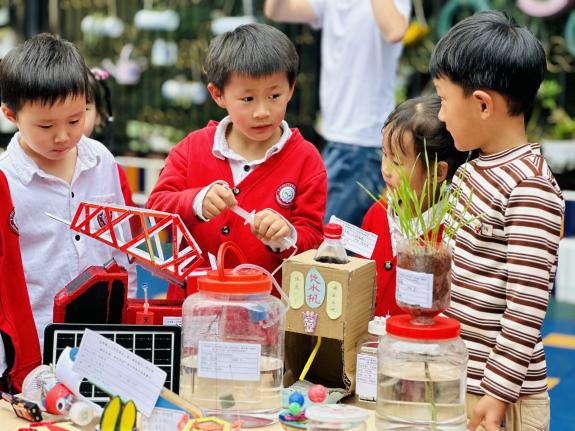 课堂教学以游戏化为主,让幼儿在自主探索中收获成就感;定期展示幼儿科技小发明、艺术创作成果,让每个孩子的闪光点都能被看见。